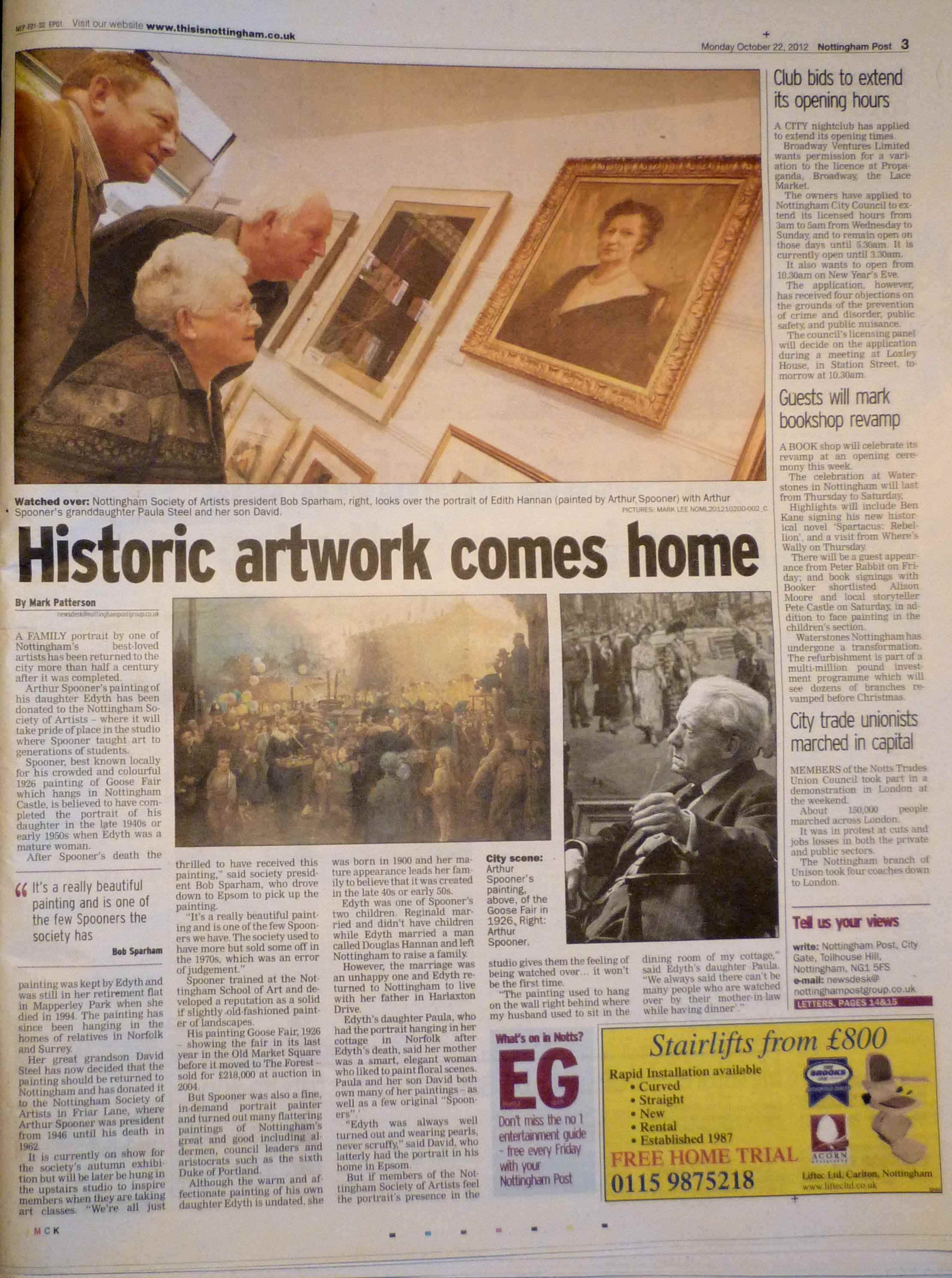 Archive material donated by Arthur Spooner's granddaughter, Paula Steel, and her son David Steel.
