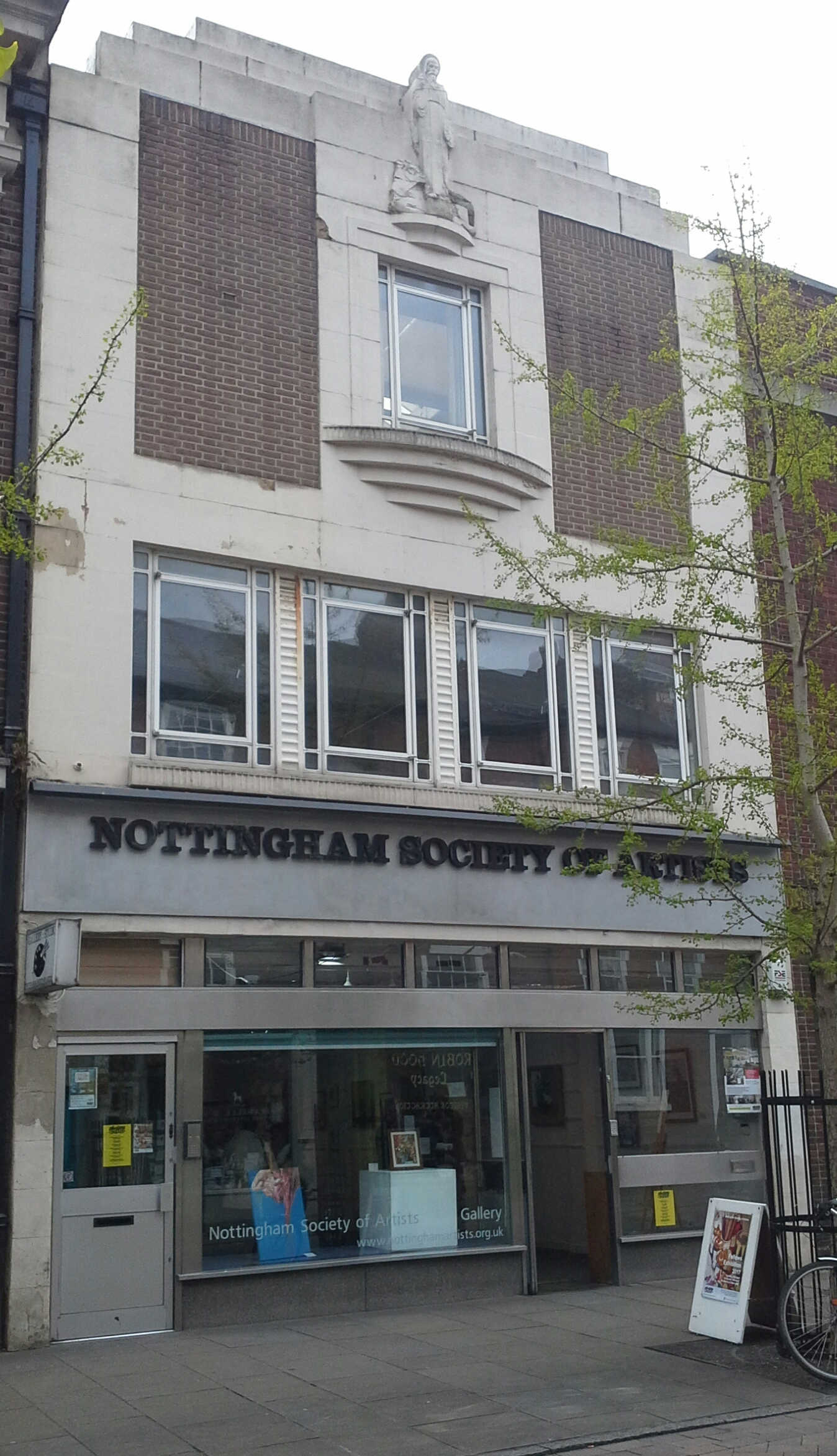 The home of the Nottingham Society of Artists is St Luke's House, pictured left, a three storey Art Deco building in Friar Lane, close to the picturesque setting of Nottingham Castle in the centre of Nottingham.