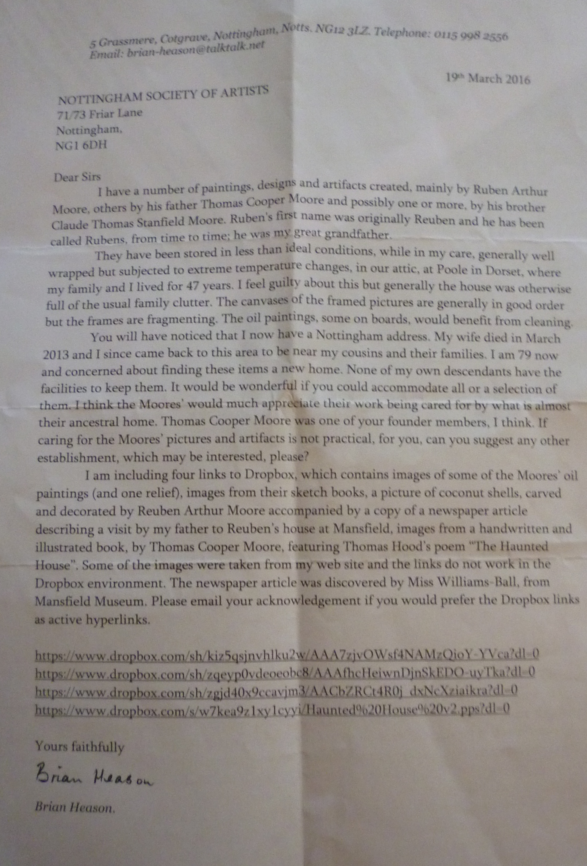 Some of our historical documentation is also lodged in the Nottinghamshire Archives Office, which you can access online at http://nawcat.nottinghamshire.gov.uk/ (opens in a new tab). Type "Nottingham Society of Artists" in the Search field.