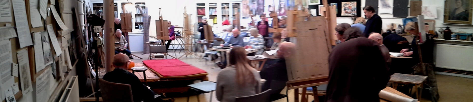 The following groups currently run for members in the studio at St Luke's House. Note that the studio is on the second floor of the building, accessed by stairs only - there is no lift. Easels, boards, tables, and chairs are provided, but you should bring your own materials. For groups employing a model there is a small contribution to cover the model's fee. Refreshments are available in our well appointed kitchen. The following groups run every week.