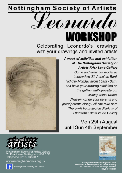 For more information on the Nottingham Society of Artists, and the event, Leonardo: His Drawings, Your Drawings, Our Drawings, visit www.nottinghamartists.org.uk.